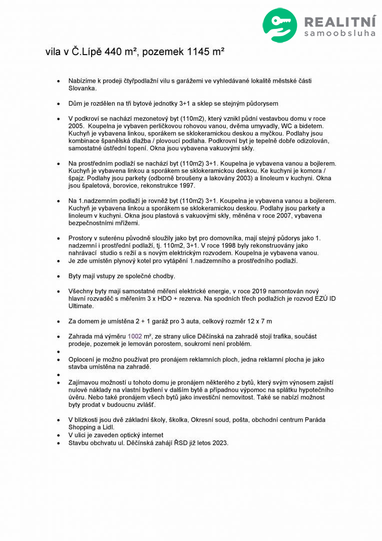 Nabízíme k prodeji čtyřpodlažní vilu s garážemi ve vyhledávané lokalitě městské části Slovanka.