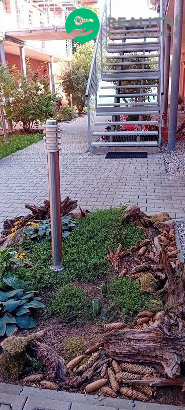 Byt je součástí dvou domků, které vytvářejí útulný dvorek. Cestička lemovaná okrasnými keři vás zavede k blankytnému bazénu. Vedle něj najdete houpačky, klouzačku, pískoviště, trampolínu i pergolu se zahradním posezením, grilem a lednicí – ideální místo pro sousedská setkání.