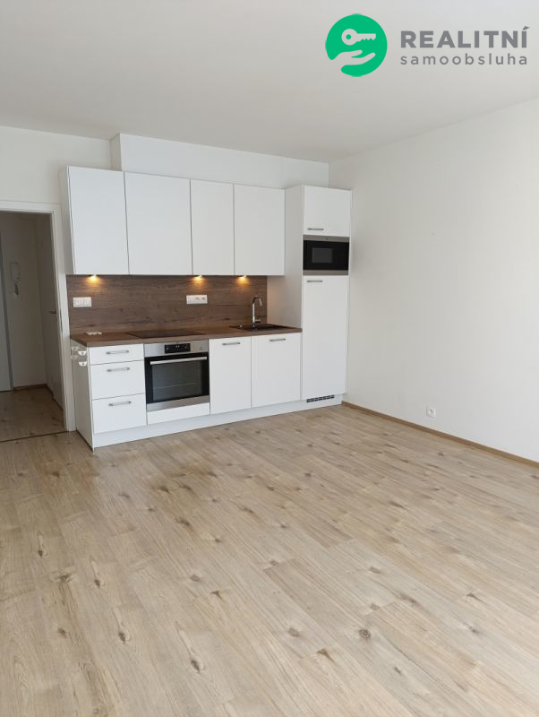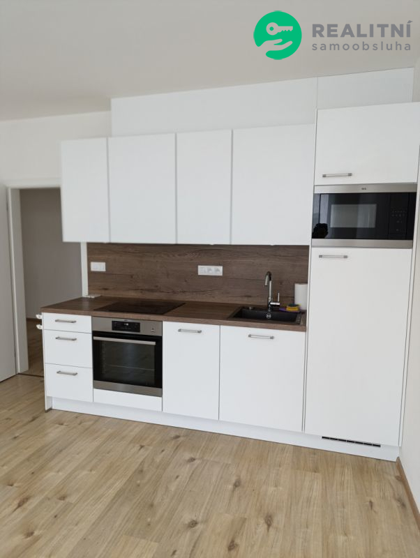 Byt je částečně zařízen – moderní kuchyňská linka s kvalitními vestavěnými spotřebiči (elektrická varná deska, elektrická trouba, mikrovlnná trouba, lednice a myčka).