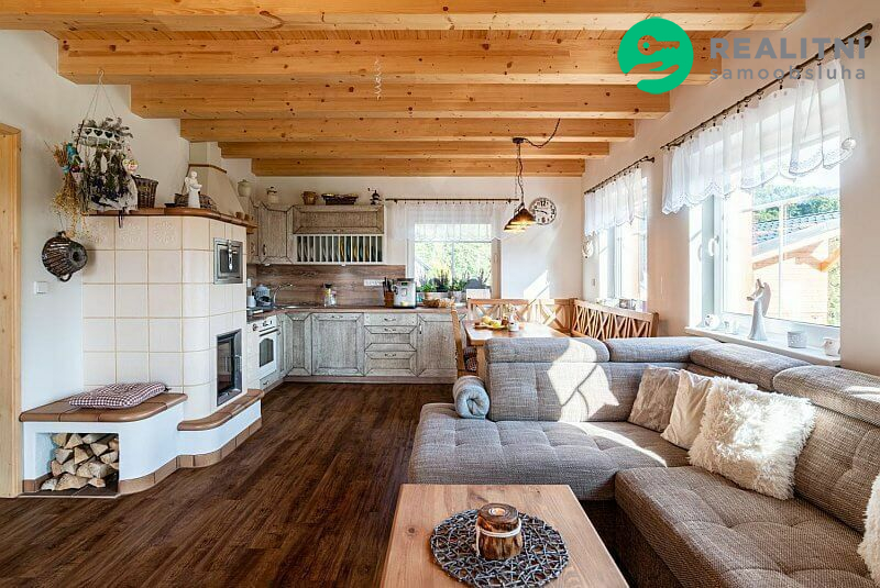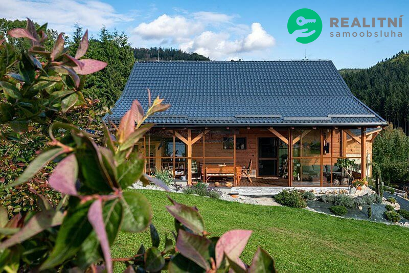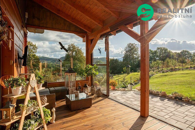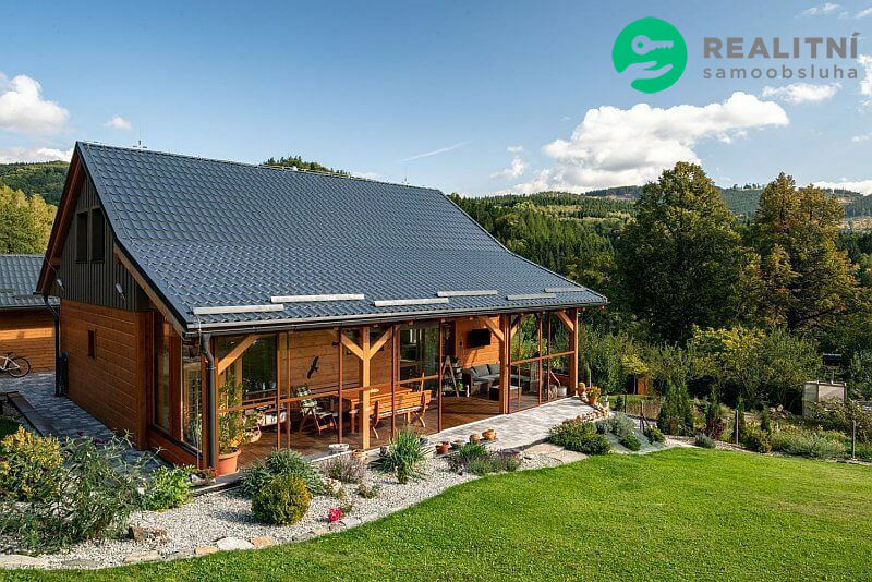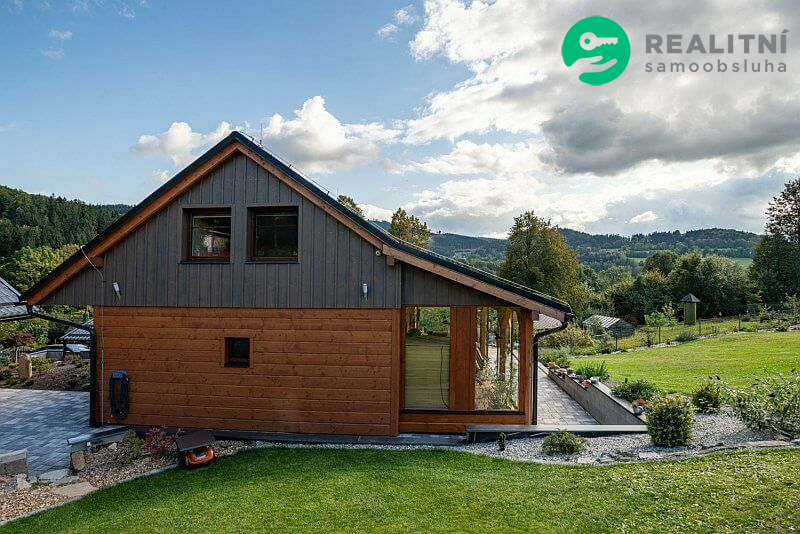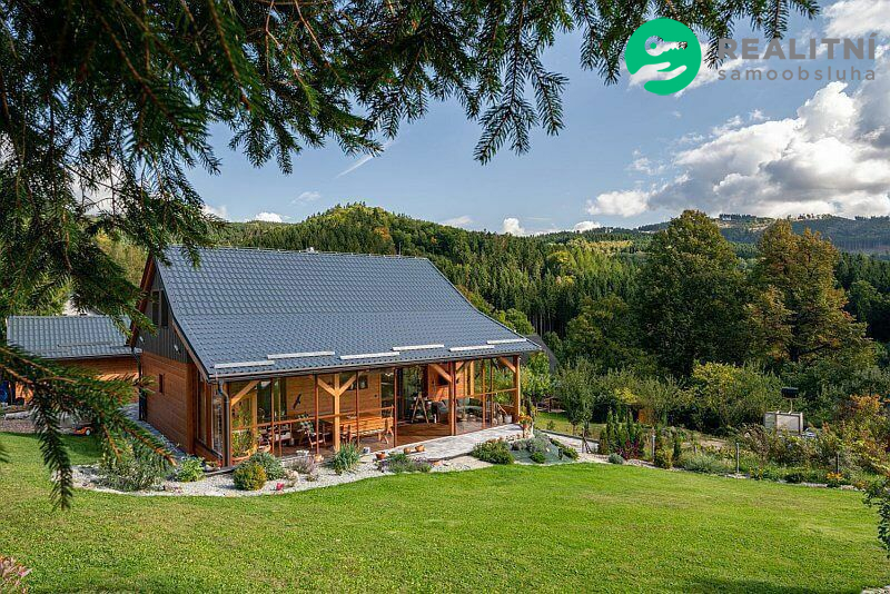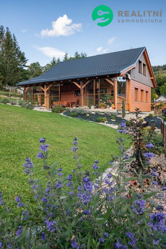 Dům je dřevostavba ve stylu roubenky ideálně zateplená, dům je 4,5 roku starý postavený na krásném místě s výhledem na Praděd, Šerák, Velký kotel a Obří skály. Pozemek na kterém dům stojí je 1000m2. K domu patří přístřešek na dvě auta, hospodářský domek, skleník a udírna. Velká zasklená terasa, která se dá celá otevřít rozměr 11 x 3 m2. Vytápění el. kotlem, ale více se používá kachlová kamna, velice úsporné. Na nemovitosti vázne věcné břemeno dožití, které bude v případě prodeje domu zrušeno přímo majitelem.