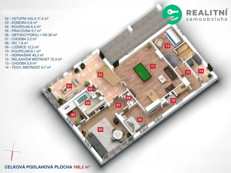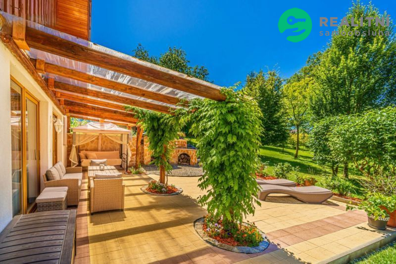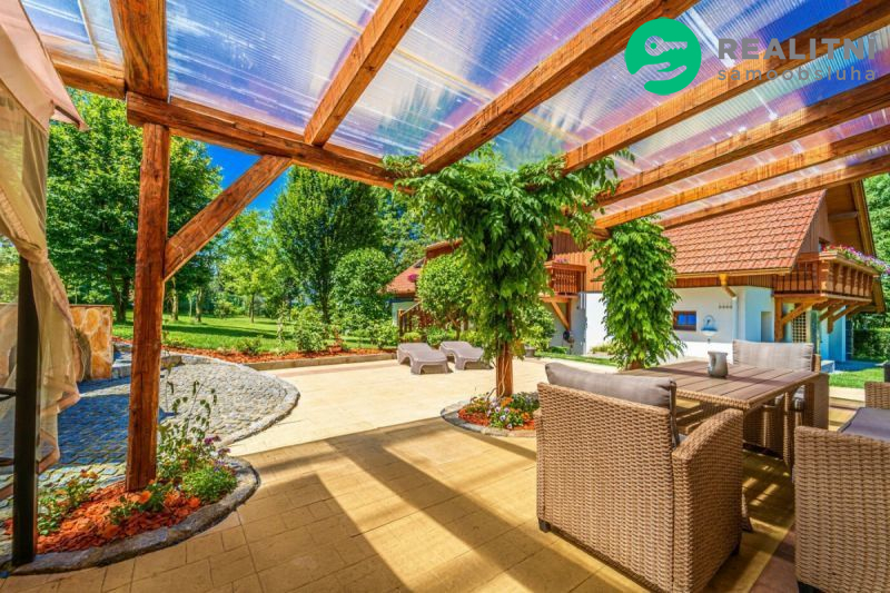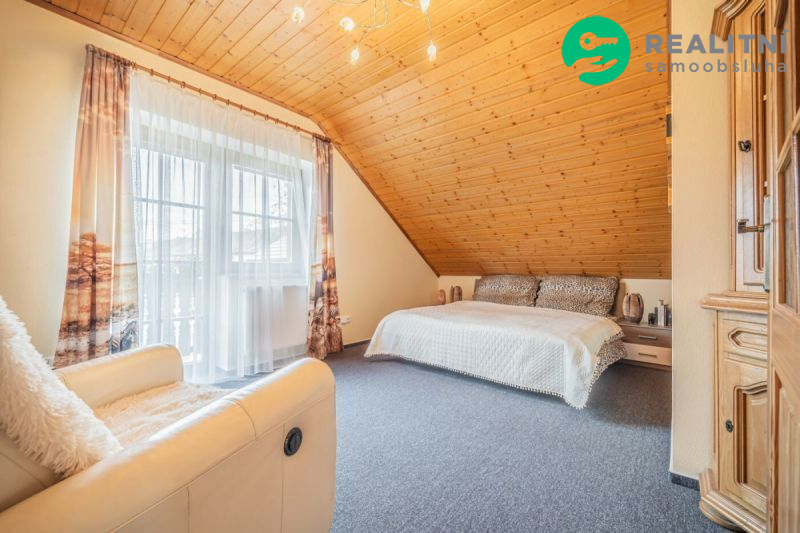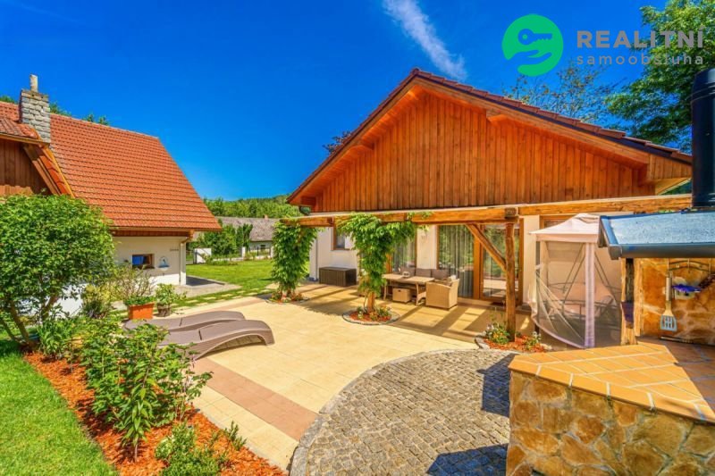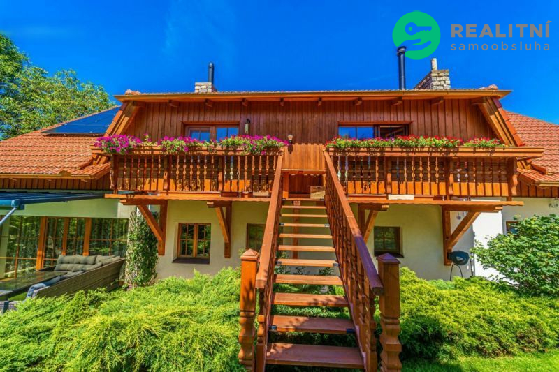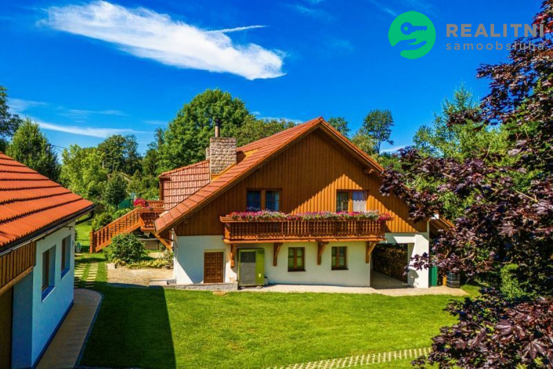 Prodej rodinného domu/penzionu 468 m² Na prodej je plně vybavený dům/penzion v bavorském stylu v obci Chodská Lhota u Domažlic. Tato nemovitost nabízí možnost spokojeného života i podnikání. Hlavní dům nabízí mimo obytné prostory i saunu, solárium a dvě terasy. Najdete zde 6 prostorných ložnic, 3 koupelny, 2 exkluzivní obývací pokoje s kuchyní, kulečníkovou místnost pro zábavu s přáteli a posezení v zimní zahradě. Jedním ze skvělých benefitů je, že část domu tvoří samostatný prostorný byt pro hosty nebo členy rodiny. Energie jsou v tomto domě řešeny nadčasově (energetický štítek A) s ohledem k přírodním zdrojům, a to fotovoltaikou a tepelným čerpadlem, čímž se výrazně snižují provozní náklady. Kolem domu se prostírá rozlehlá, krásná a udržovaná zahrada, ideální pro relaxaci. V zahradě je umístěn zděný letní dům s další kompletně zařízenou kuchyní a prostornou a pohodlnou společenskou místností s jídelnou, příjemnou terasou a grilem. Dům je ideální pro ty, kteří hledají klidné a idylické místo pro život. Vhodné jak pro rodiny s dětmi i pro seniory nebo také jako skvělou investiční možnost v krásném koutu naší země - například k provozování rodinného penzionu. Benefity: Nízké provozní náklady díky fotovoltaice a tepelnému čerpadlu. Velký prostor a komfort pro celou rodinu. Možnost relaxace v sauně a soláriu. Zábava s přáteli v kulečníkové místnosti. Soukromí pro hosty v samostatném bytě. Velká zahrada okrasná i užitková. Letní dům pro grilování a posezení s přáteli. SOUČÁSTÍ PRODEJE DOMU JE KOMPLETNÍ VYBAVENÍ