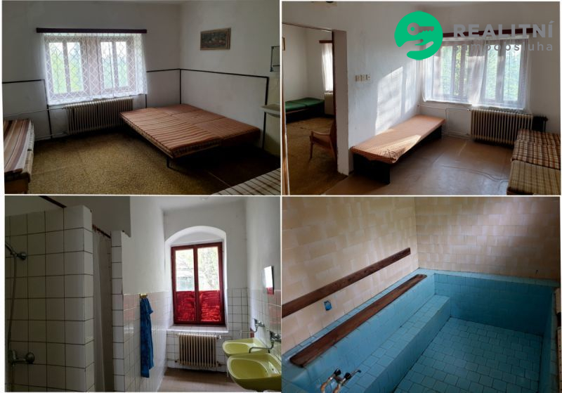 Nabízím k prodeji areál vhodný pro penzion, hotel s restaurací, sanatorium, domov pro seniory, dětský domov, rodinné či firemní sídlo apod., který se nachází v okrajové části obce Nové Město nad Metují, v lokalitě zvané Na Rezku. Jedná se o komplex 4 budov, které v minulosti sloužily jako lázně. Nejedná se kulturní památku. Hlavní budova v přední části areálu byla postavena v roce 1801. V roce 1866 byl přistavěn sál. V roce 1922 byla budova zvýšena o 1 patro. V roce 1984 byla provedena modernizace - umyvadla na pokoje, okna, elektroinstalace (rozvody v mědi) atd. V přízemí se nachází 2 sály, kuchyně, restaurace s barem (bez vybavení), v dalších dvou patrech je cca 30 pokojů, sprchy, WC a několik technických a společenských místností. Po levé straně hlavního objektu se nachází plně podsklepený cihlový objekt se čtyřmi byty a třemi garážemi, který byl postaven v roce 1977 (kolaudace). Bytové jednotky jsou - 1.byt (2+1)-60 m2, 2.byt (1+1)-52 m2, 3.byt (3+1)-92 m2, 4.byt (3+1)-95 m2. 1. byt je po částečné rekonstrukci (nová plastová okna, podlahy, linka, krbová kamna atd.), další byty jsou před rekonstrukcí. Za hlavním objektem se nachází objekt bývalé kotelny, který nyní slouží jako sklad a vedle objekt dílen, který byl postupně upravován - ve spodním podlaží byla zřízena vinárna a sauna s vnitřním bazénem, ve vrchním podlaží je dílna a další prostor s garážovým vjezdem. Za budovami je asfaltová plocha, která slouží jako parkoviště (500 m2) nebo zde může být hřiště pro tenis, volejbal apod., další parkování (100 m2 s možností rozšíření) je vpravo od hlavní budovy.