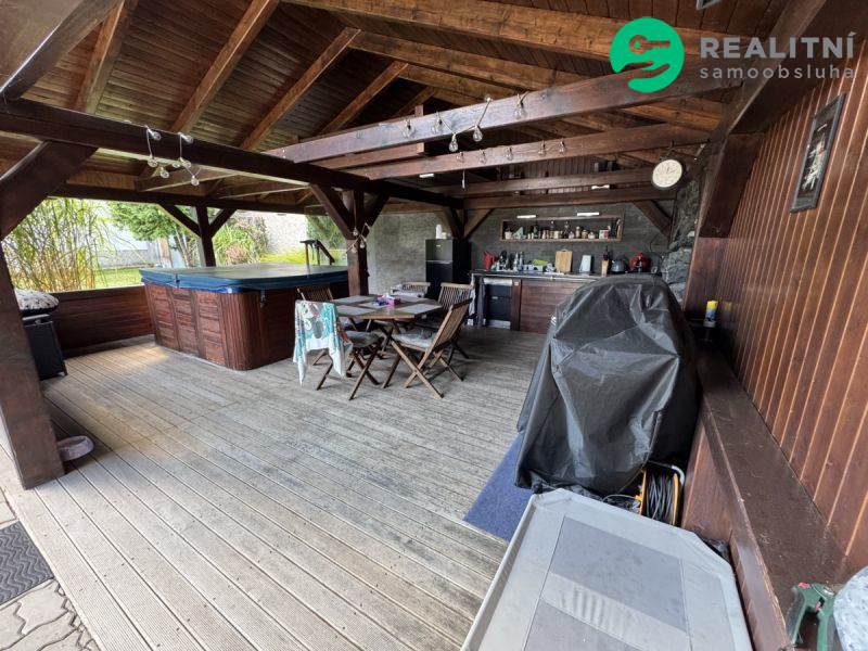 pergola s venkovní kuchyní a vířivkou,